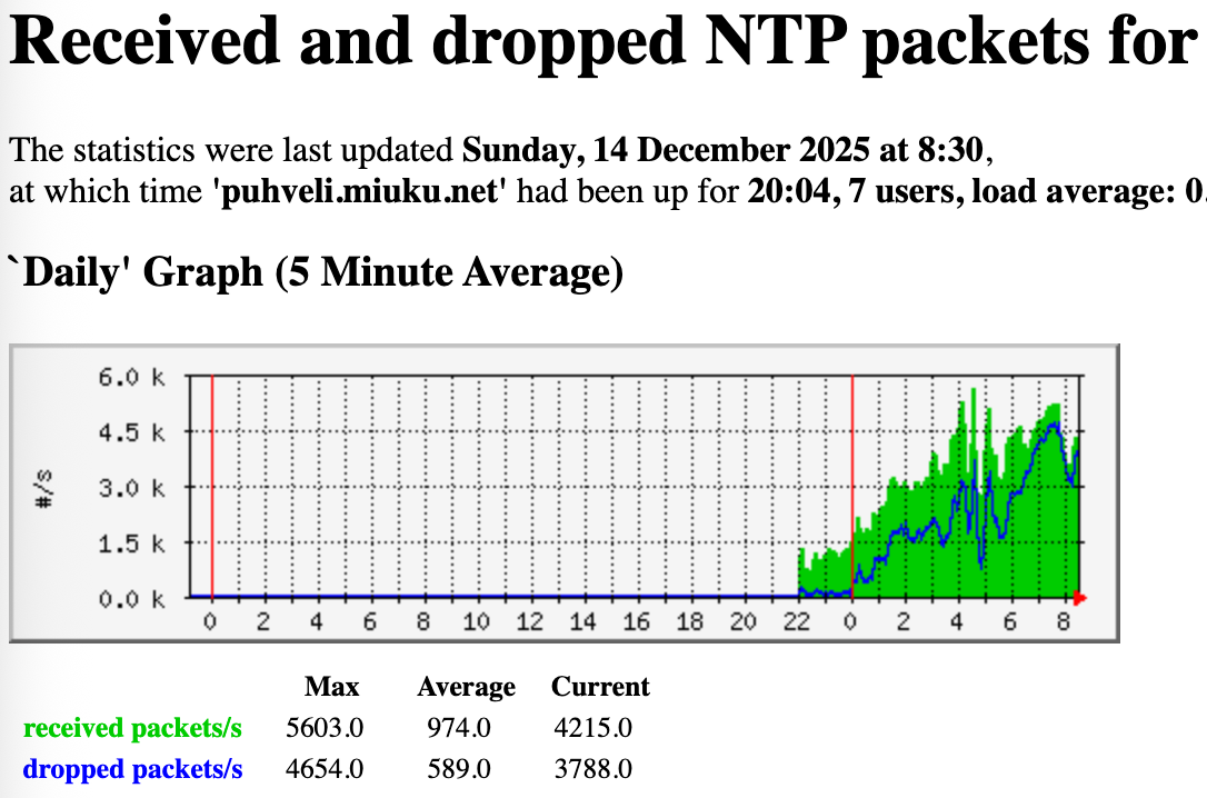 I came to check upon my servers and found out that my VPS in Philippines is suffering too many requests, even beyond the provided bandwidth allocation (30 Mbps). What’s worse, the incoming requests aren’t subsiding after I lowered the speed or dropped completely to monitoring only mode which usually works elsewhere. Stopping chrony makes it even worse. The network graph was suspiciously flat before that too, usually there are some spikes of traffic at certain whole minutes but not here. Did someone just hardcode IP of my server to config of whole ISP? But it’s not one ISP, it’s several from quick check of the most abusive source IPs. Look at it: